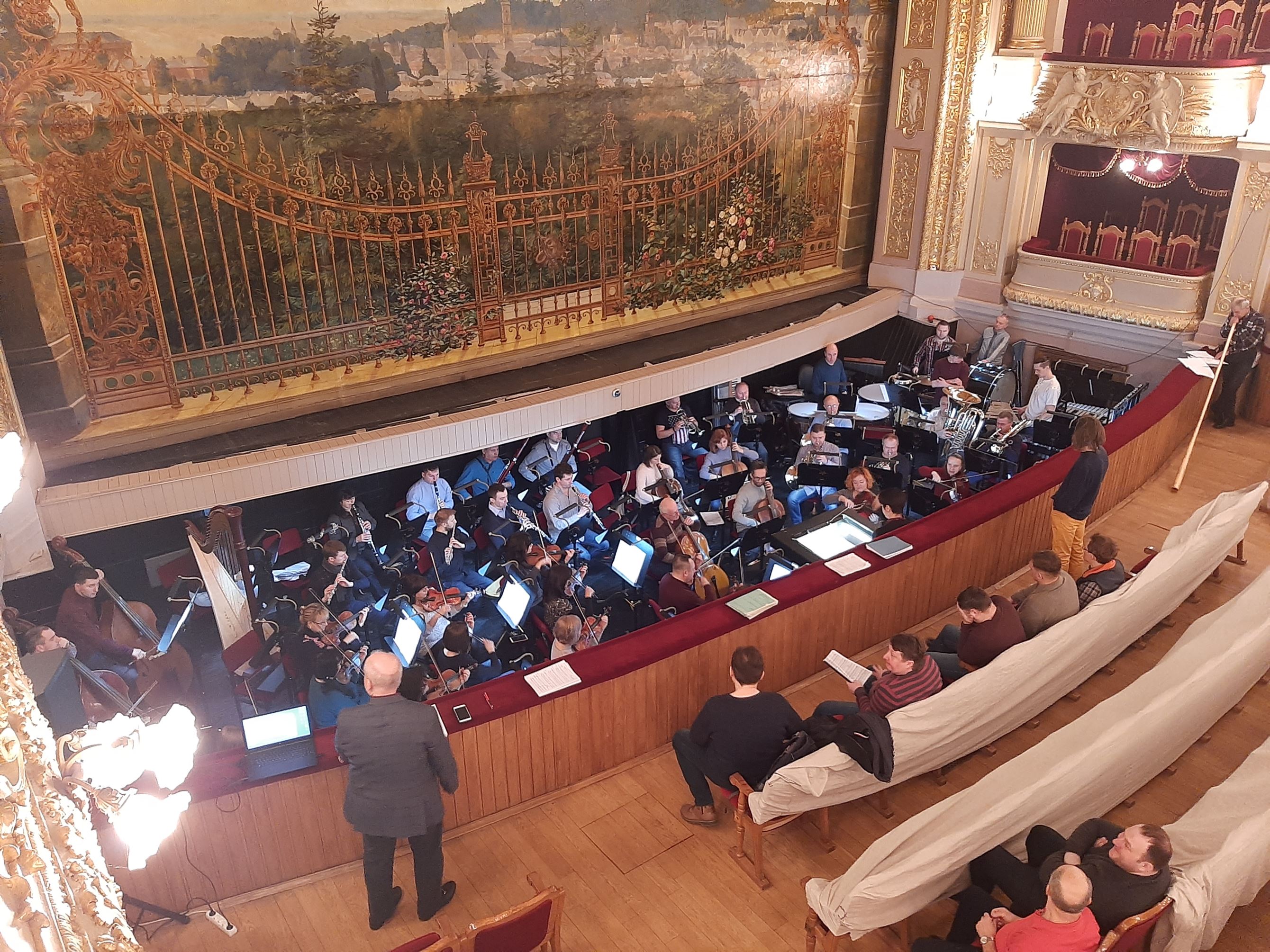 У звучання оркестру вслухаються композитор Іван Небесний та солісти, які розмістилися у залі для глядачів і вплітають у загальну тканину свої партії. Атмосфера дуже творча й цікава.