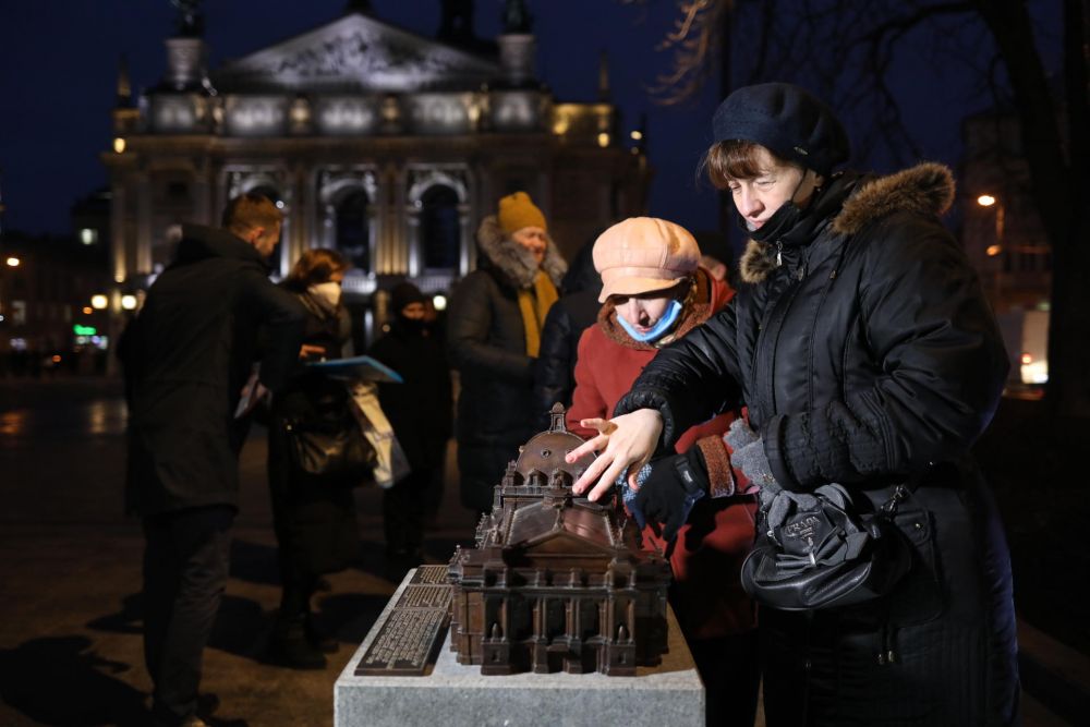 «Побачити дотиком» Львівську оперу можуть відтепер люди із вадами зору. На площі перед театром була встановлена бронзова модель театру, обладнана таблицею зі шрифтом Брайля. Модель виготовив скульптор Василь Одрехівський з ініціативи Львівської міської ради та Оксани Потимко, очільниці Львівського обласного осередку ВГО «Українська спілка інвалідів – УСІ».
