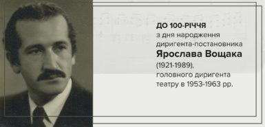 Ярослав Вощак (1921-1989) – виходець із української національно свідомої, інтеліґентної галицької родини. Батько, Антін Вощак, навчався у Львові та Відні, володів рідкісним фахом мистецького проектування та золотарства книжок і реставрації стародруків. Обоє батьків були активними діячами Наукового товариства імені Т. Шевченка, товариства «Просвіта». Антін був одним з керівників Стрийської філії цього товариства, а Наталя, мати Ярослава, тривалий час керувала книгарнею «Просвіти» у Львові, яка знаходилась на площі Ринок, 10. У домі Вощаків у Стрию часто збиралася місцева та приїжджа творча еліта. Так, коли до Стрия приїжджав мандрівний театр Й. Стадника, художнього керівника народного театру товариства «Руська бесіда», видатне акторське подружжя Стадників – Йосип і Софія – завжди зупинялись у домі Вощаків. Пізніше, у 1940 році, Ярослав Вощак почне свою музично-театральну діяльність в Львівському державному театрі опери та балету в трупі драматичного сектору, якою керуватиме саме Йосип Стадник, який доручить Ярославу перше диригування оперою в постановці драматичної трупи і, таким чином, виведе Вощака за диригентський пульт.