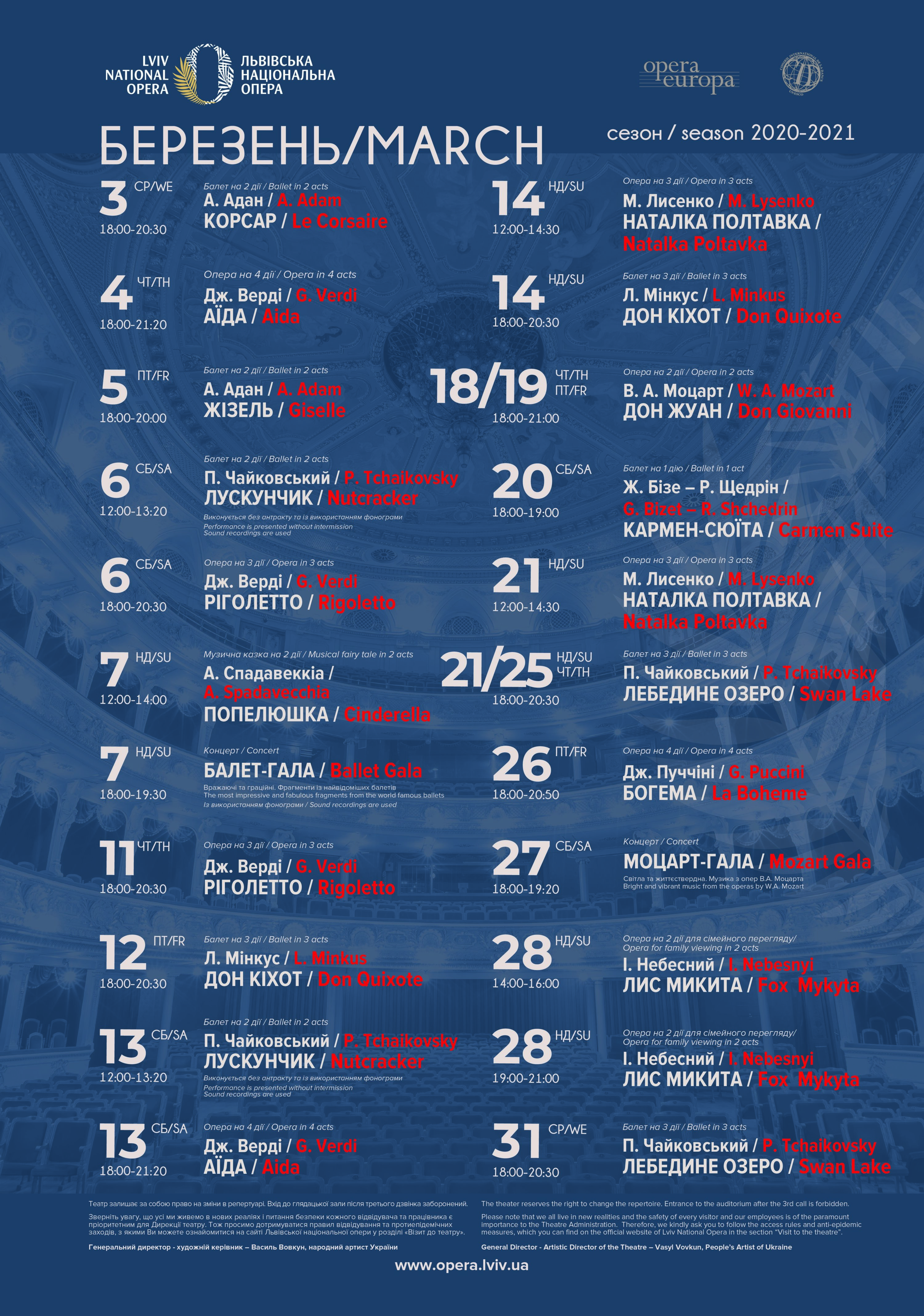 Графік перенесення вистав див. за посиланням: https://archive.opera.lviv.ua/do-uvagy-glyadachiv-2/