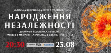 Музично-театралізоване дійство «Народження Незалежності» відбудеться 23 серпня, у День Державного Прапора України, на площі перед Львівською національною оперою. Початок о 20:30. Вхід вільний.