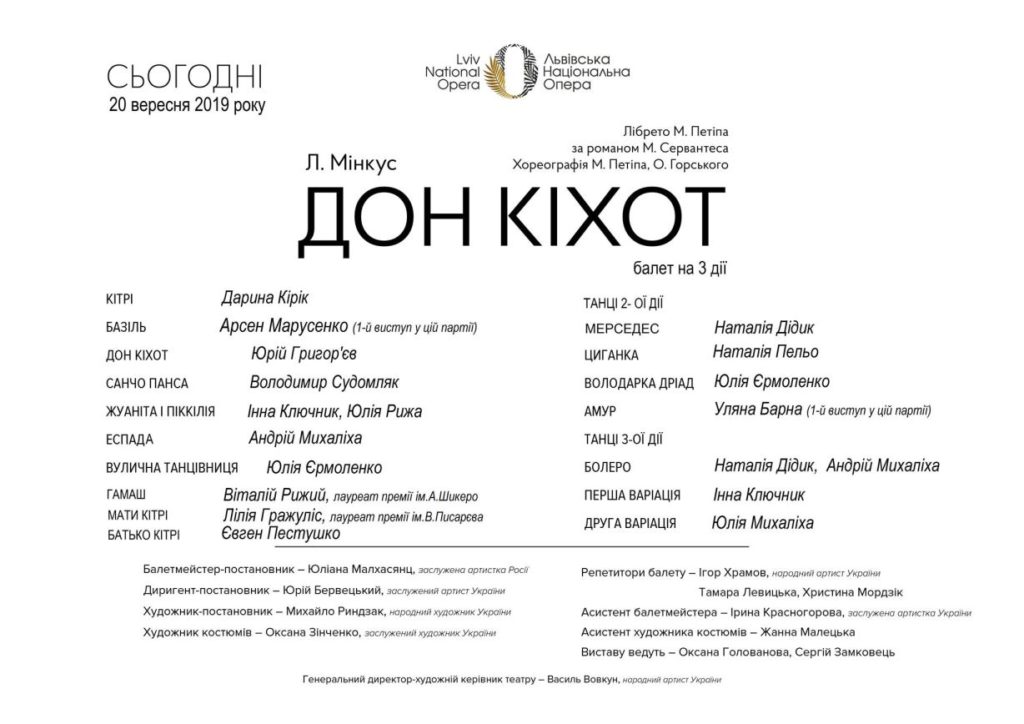 20 вересня в балеті «Дон Кіхот» Л.Мінкуса вперше у провідній партії Базіля виступив Арсен МАРУСЕНКО.