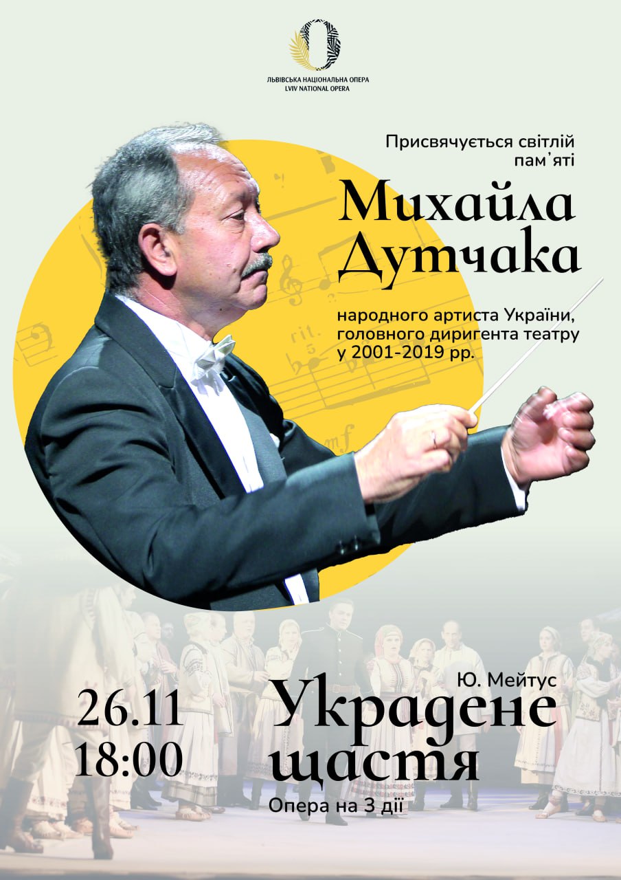 Виконання опери “Украдене щастя” Ю. Мейтуса присвячене світлій пам’яті багаторічного головного диригента Львівської національної опери, народного артиста України Михайла Дутчака (1953-2021). Сьогодні Митець відзначав би своє 70-річчя…