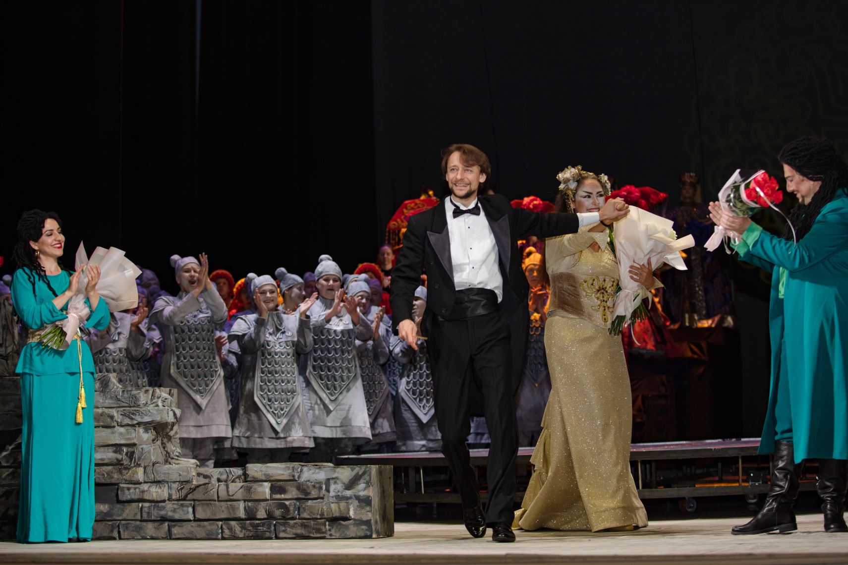 Гучне та багатоголосе «Многая літа!» прозвучало, як тільки закрилася завіса, що викликало неабияке здивування у залі. Таким чином артисти вітали музичного керівника, диригента-постановника опери «Турандот» Івана Чередніченка з його 34-літтям. До вітань диригентові приєднався також Голова Верховної Ради України Дмитро Разумков, подарувавши Іванові Чередніченку пам’ятний подарунок.