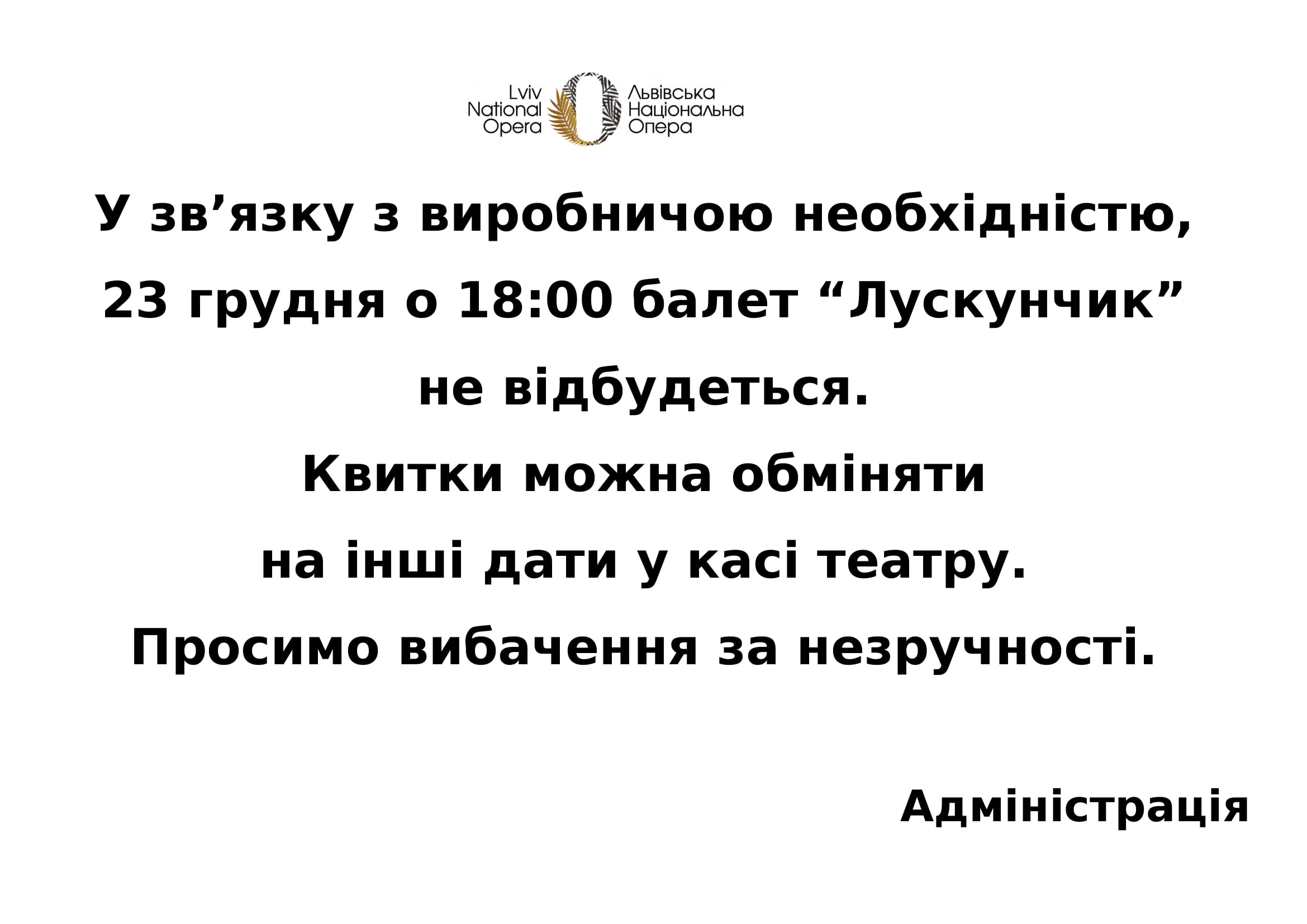 До уваги глядачів! Зміна в репертуарі 23 грудня