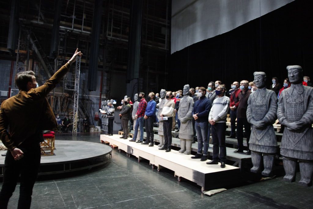Хор в опері “Турандот” є окремим дійовим персонажем, який проходить процес трансформації від бездумного натовпу (la folla) до стану розуміння та очищення: як духовного, так і фізичного. Цю ідею дуже влучно втілює режисер постановки Міхал Знанецький. Під час репетиційного процесу ми так само поступово проходили цей шлях до усвідомлення того, що саме композитор хотів донести нам своєю музикою та який сенс у неї вкладав.