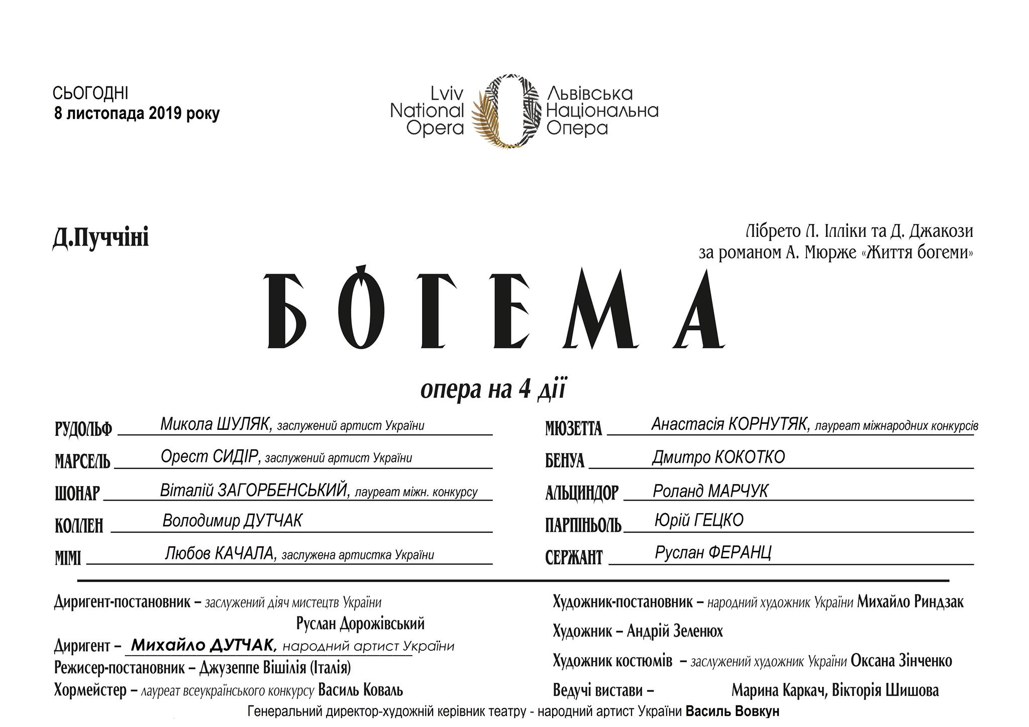 8 листопада в опері “Богема” Д.Пуччіні під орудою головного диригента народного артиста України Михайла Дутчака в партії молодого поета Рудольфа виступив провідний соліст Національного театру опери та балету імені Тараса Шевченка (м.Київ), заслужений артист України Микола Шуляк. Вітаємо весь колектив із прекрасною виставою!
