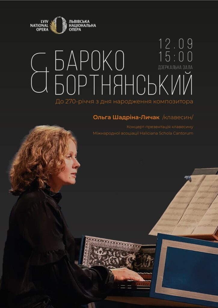 Концерт клавірної музики «Бароко і Бортнянський» презентував музику українського та західноєвропейських композиторів у виконанні учасниці міжнародних фестивалів давньої музики, лауреатки міжнародних конкурсів, клавесиністки Ольги Шадріної-Личак (м. Київ).
