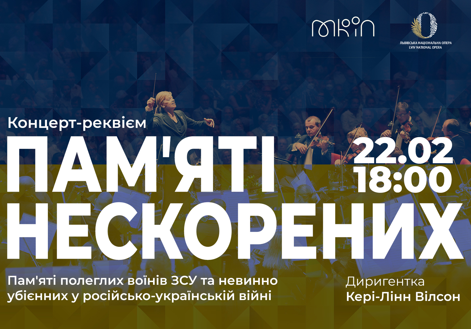Напередодні першої річниці російського повномасштабного вторгнення Львівська національна опера запрошує долучитися до вшанування пам’яті полеглих воїнів ЗСУ та невинно убієнних у цинічній російсько-українській війні та присвячує концерт-реквієм «Памʼяті нескорених», що відбудеться 22 лютого о 18:00.