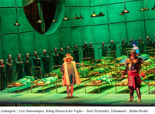 Für seine Männer-Gestalten brauchte der Regisseur keine starken Helden-Tenöre. Allerdings zeigte sich die Männerbesetzung nicht nur körperlich, sondern auch stimmlich blass (Nutthaporn Thammathi und Roman Corentsvit). Die Neuproduktion „Lohengrin“ entstand aus der Idee des Musikdirektors Myron Yusypovych, der die Partitur-Ausgabe von 1887 (Leipzig, Breitkopf und Hartel) in der Hand hatte. Obwohl der Dirigent die Helden-Tenöre sowie das Bühnenbild auf Grund von originären Partitur-Hinweisen Richard Wagners vermisste, entwickelte sich das Orchester dynamisch entsprechend dem Wagners Klangrausch. Die Frauenbesetzung Olesia Bubela und Alla Rodina als Elsa und Mariia Berezowska und Liudmyla Savchuk als Ortrud hervorragend agierte. besonders die Mezzosopranistinnen mit guten Wagner-Stimmen.