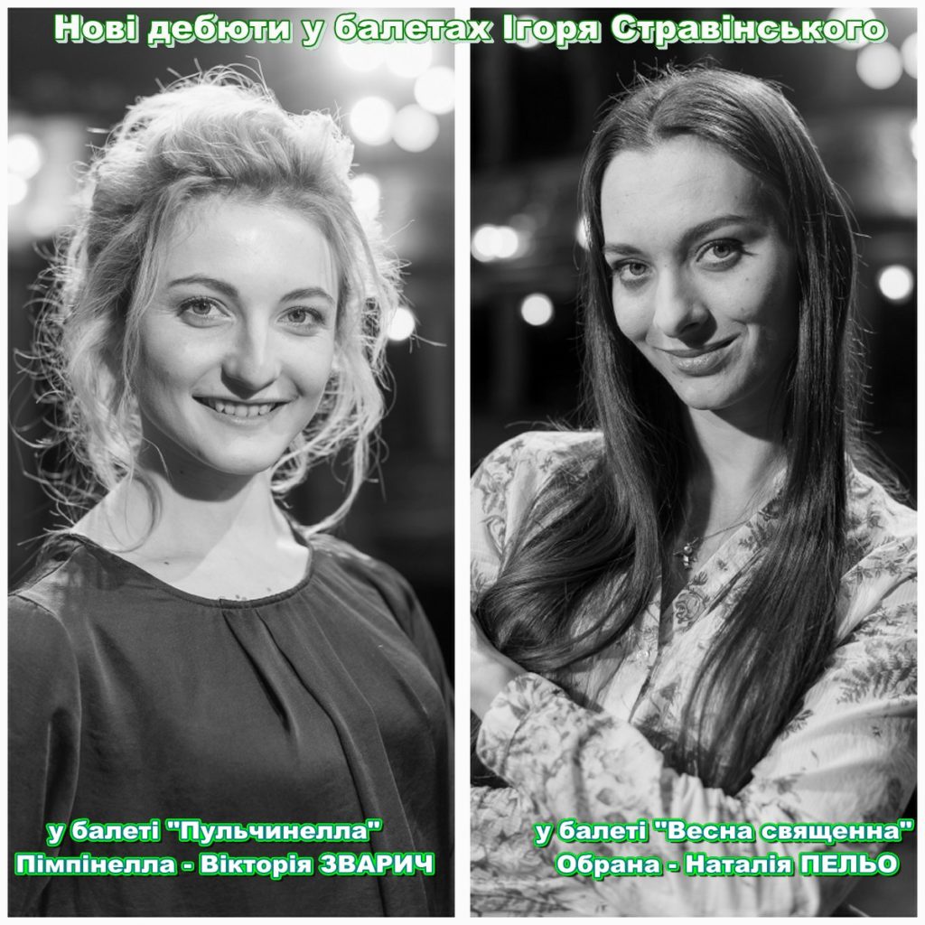 У головних жіночих партіях вперше виступлять: Вікторія ЗВАРИЧ (Пімпінелла у «Пульчинеллі») та Наталія ПЕЛЬО (Обрана у «Весні священній»).