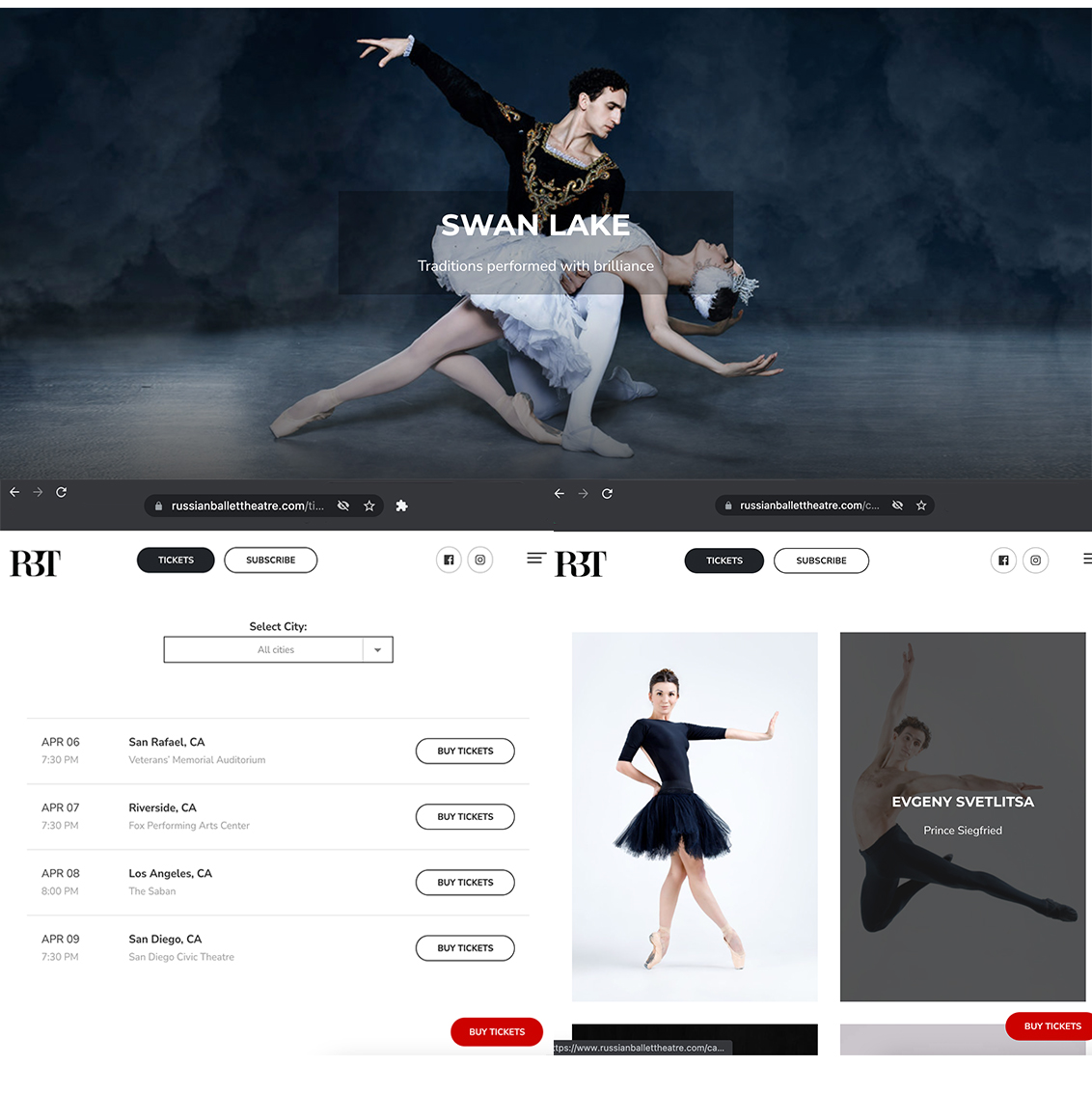 Згідно з сайтом компанії (https://www.russianballettheatre.com), до участі у виставі, здійсненої у постановці хореографа Маріїнського театру (РФ) Надії Калініної, запрошено також артистів балету з Росії.