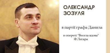 11 лютого в опереті “Весела вдова” Ф. Легара вперше виконає головну партію – партію графа Данила Олександр Зозуля (баритон).