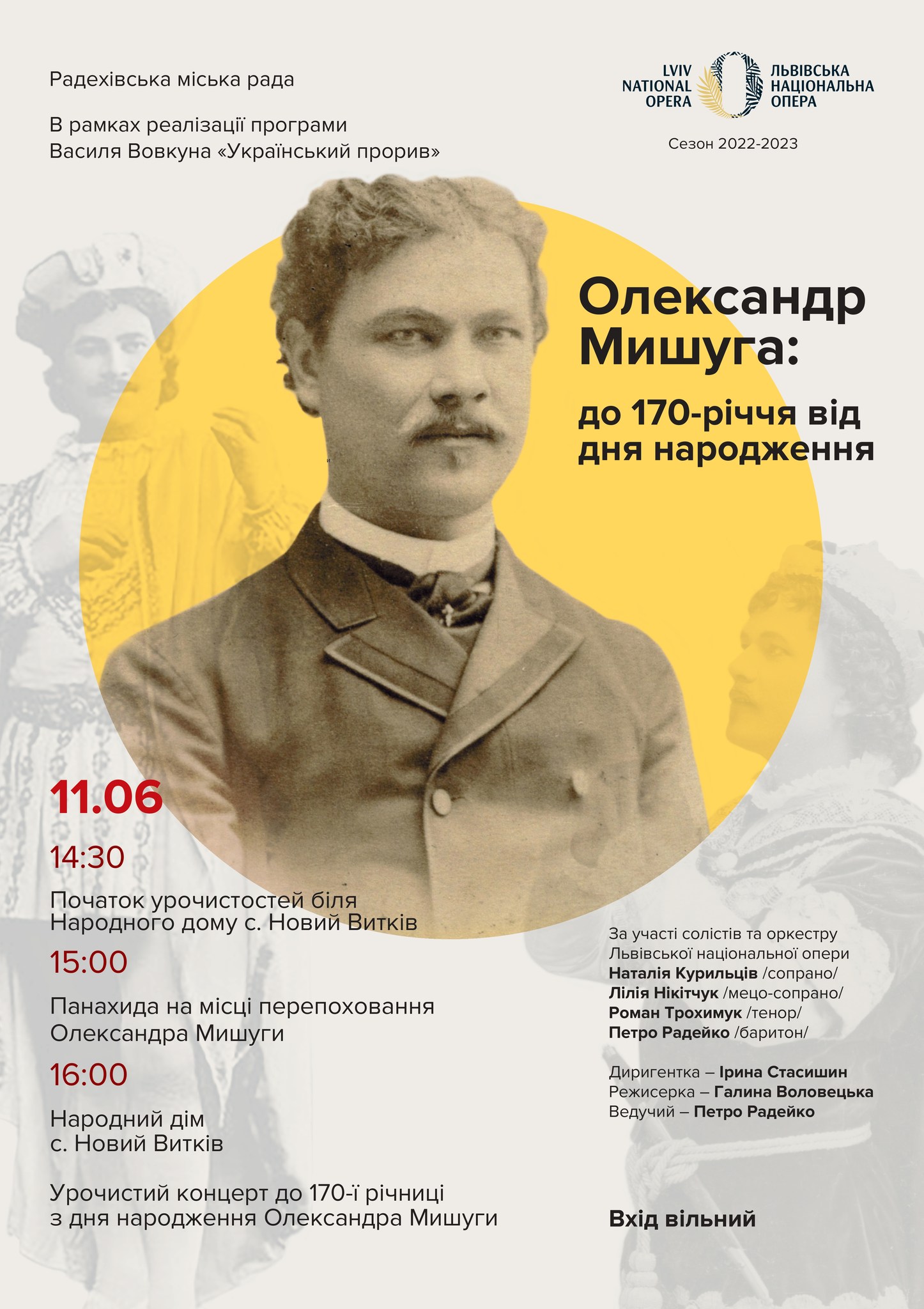 Артисти Львівської національної опери презентуватимуть концертну програму «Олександр Мишуга: до 170-річчя від дня народження».