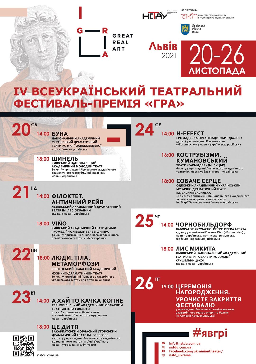 Як зазначено на офіційній афіші заходу, церемонія нагородження та урочисте закриття фестивалю пройде на сцені Львівської національної опери.