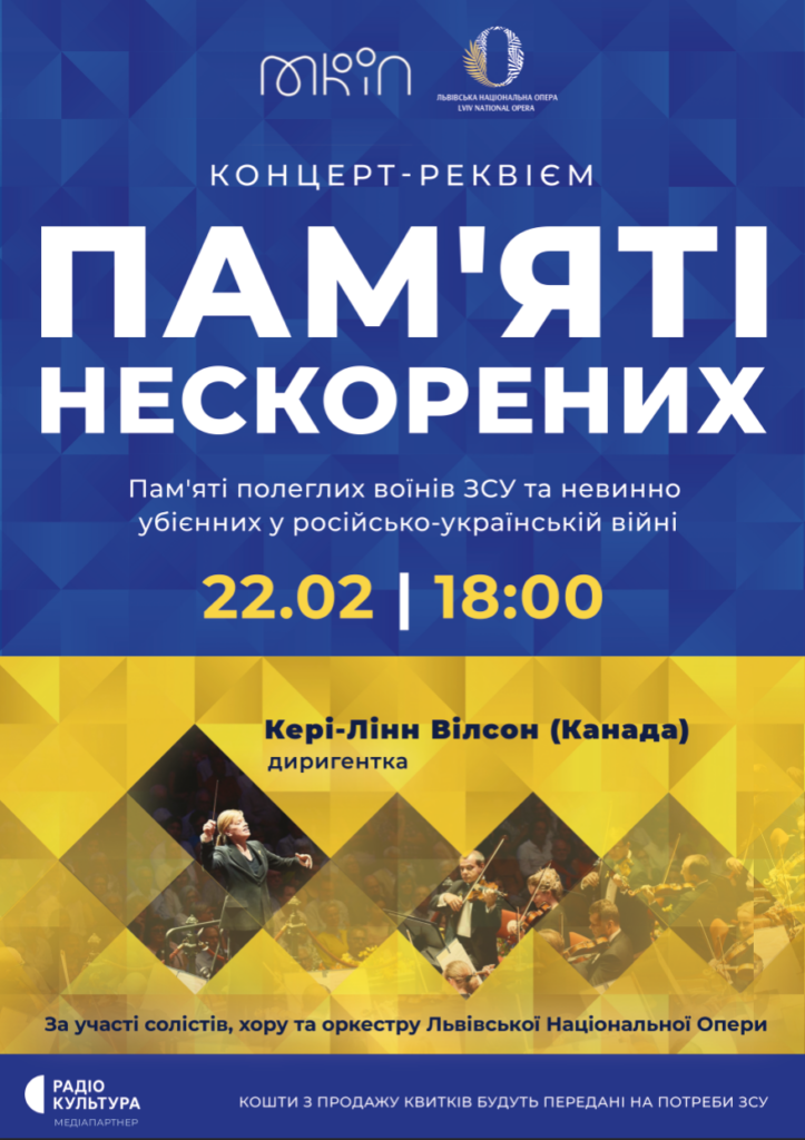 Рік запеклої боротьби, рік важких днів і ночей, рік болючих  втрат, але й також рік сили, хоробрості та звитяги, та головне – віри у Перемогу! Напередодні першої річниці російського повномасштабного вторгнення, 22 лютого, Львівська національна опера запрошує долучитися до вшанування пам’яті полеглих воїнів ЗСУ та всіх невинно убієнних, чиї життя цинічно забрала росія.