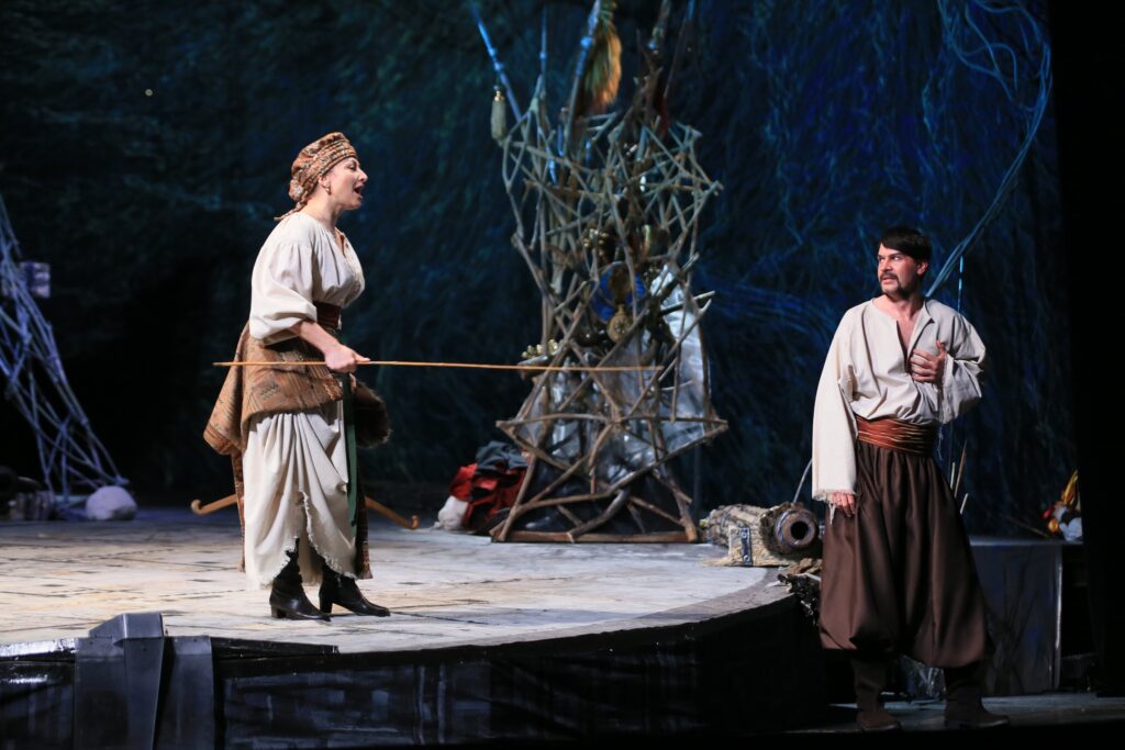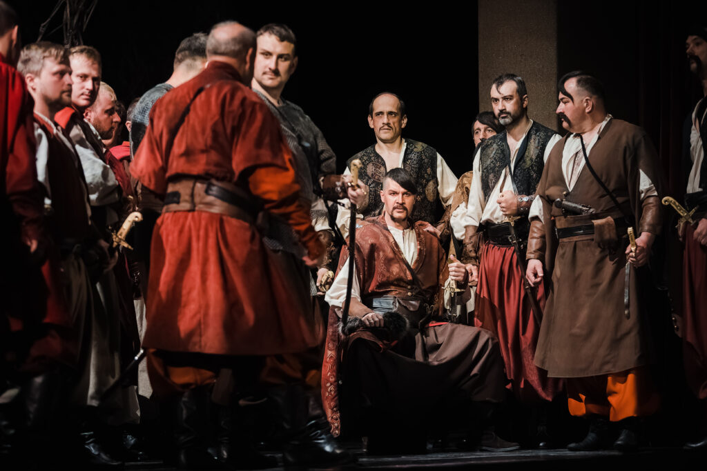 Щодо претензій. Танцювальні номери: в мене до них виникає питання, тому що вони виглядали для мене шароварно — в традиції ансамблю Вірського. Я розумію, які мають бути традиційні українські танці, і що вони зовсім не такі. Я теж розумію умовність оперної сцени, де потрібно показати широту жесту, але якогось пошуку, щоб врахувати ці опозиції, я не помітив. Мені здалося, що тут пішли шляхом найменшого спротиву: в нас є оце поєднання класичного танцю і умовного народного танцю, за зразком якого ми рухаємося. І ось ці балетні сцени для мене виглядали як повернення в шароварщину, попри те, що ми від неї відходимо.
