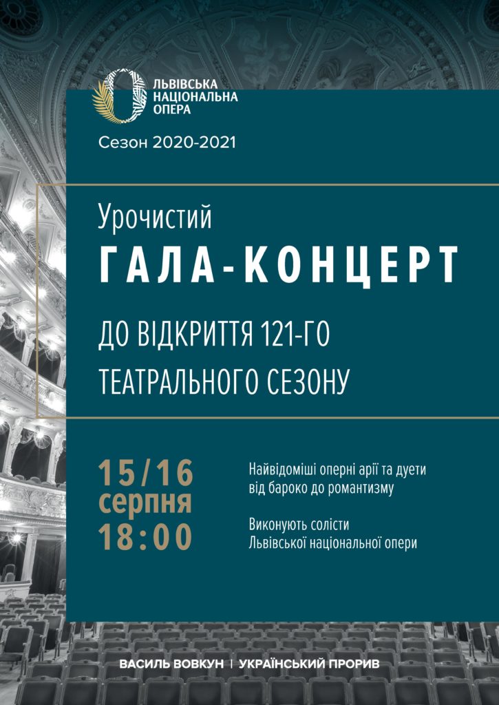 Гала-концертом із найвідоміших оперних “хітів” Львівська національна опера розпочинає 121-ий театральний сезон