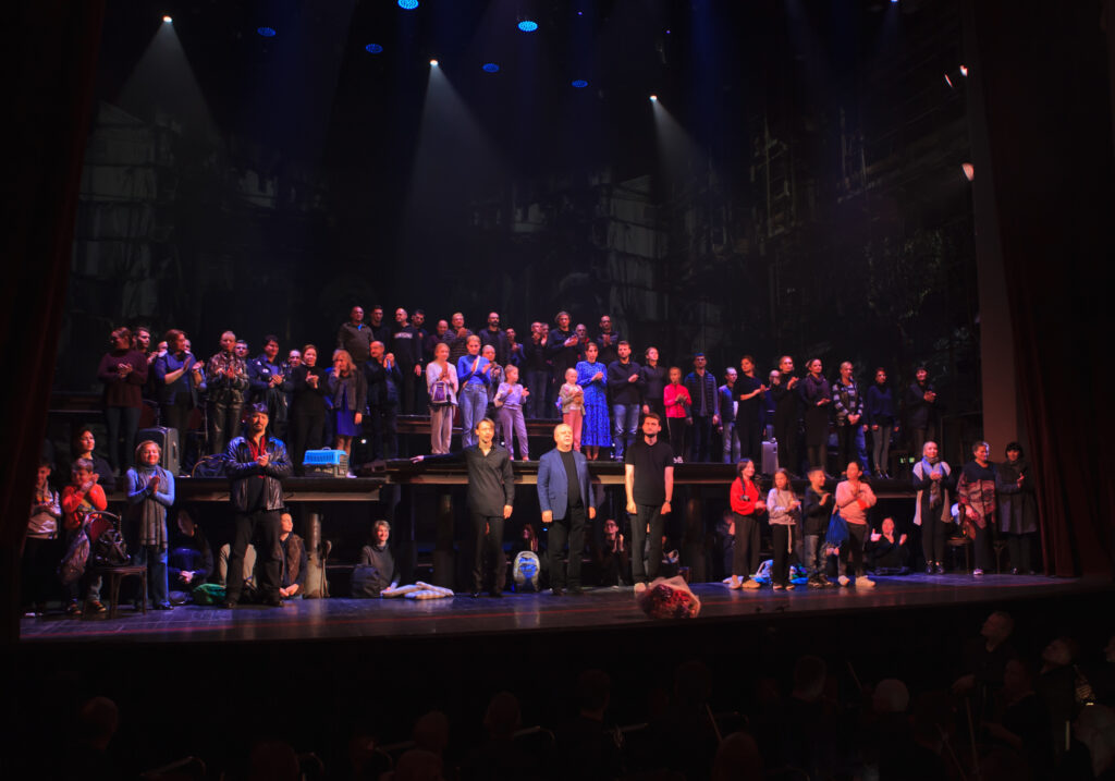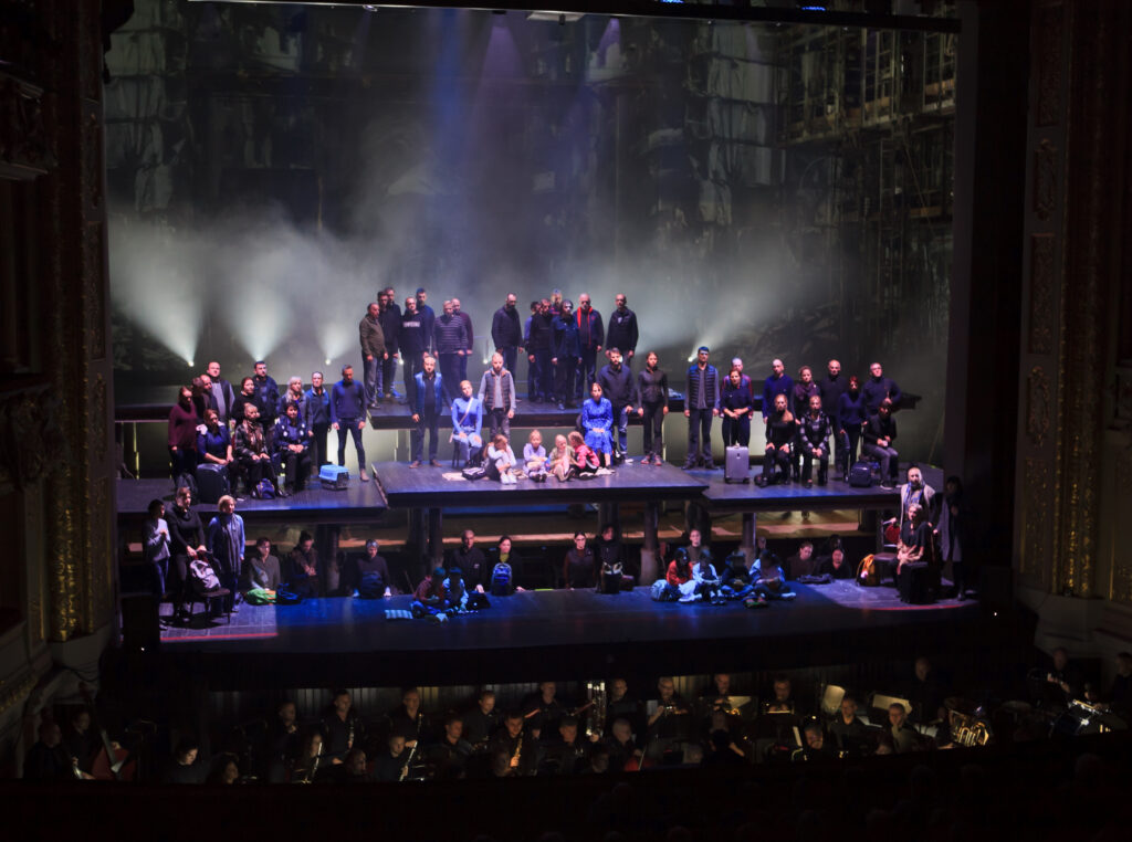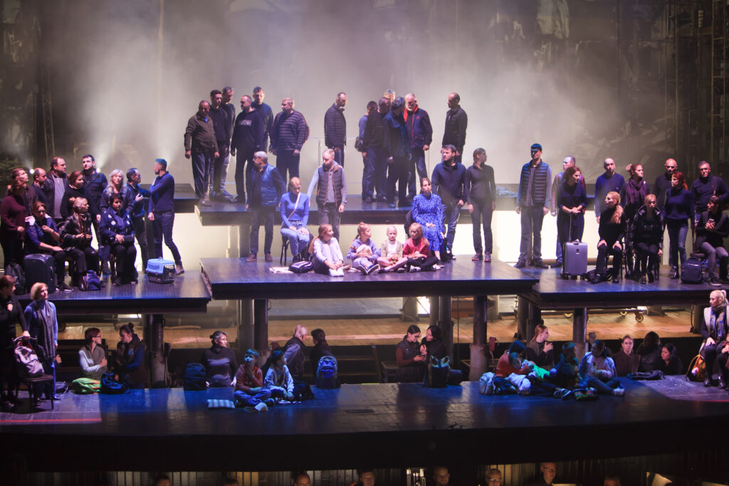 Кілька слів на завершення варто присвятити цілісній концепції сценічного дійства та виконавцям. Режисер В. Вовкун і медіахудожник Олег Кіндратів використали три вельми влучних візуальних символи, пов’язаних зі світлинами, що облетіли увесь світ: натовп цивільних – жінок, дітей, старших людей, що ховались під мостом в Ірпені навесні 2022 р.; натовп, який очікував на вокзалі Харкова поїзду, щоби виїхати з бомбардованого міста; на задньому плані відеодекорація зруйнованого будинку. Вони одразу створили відповідний імпульс сприйняття і не змінювались впродовж всього дійства.