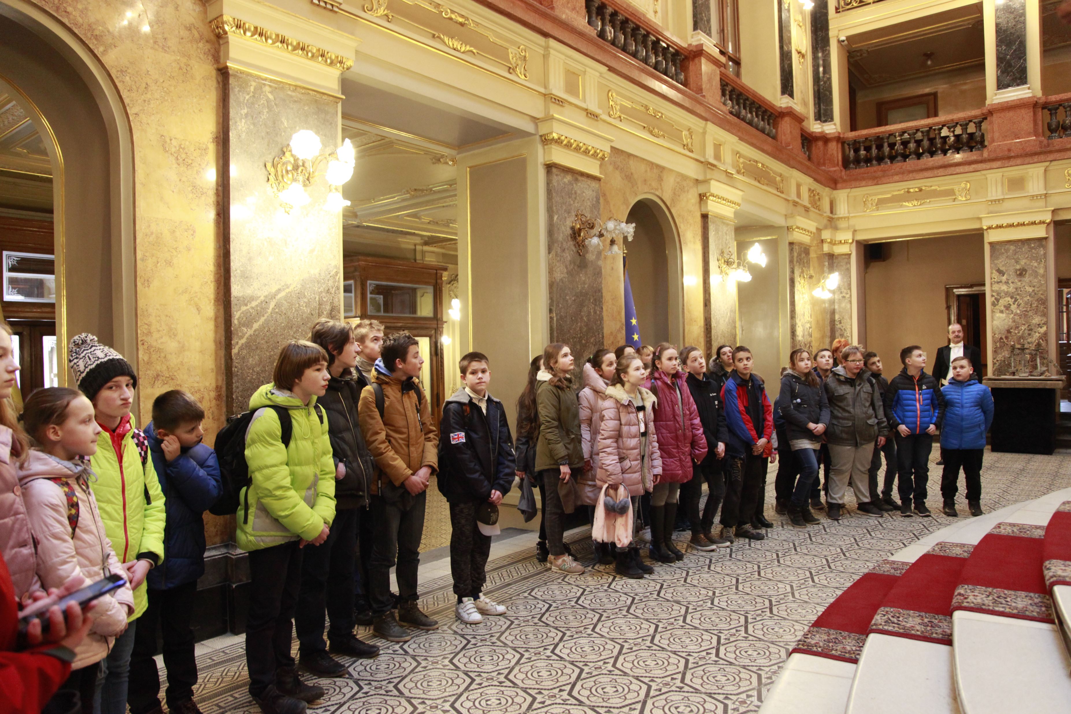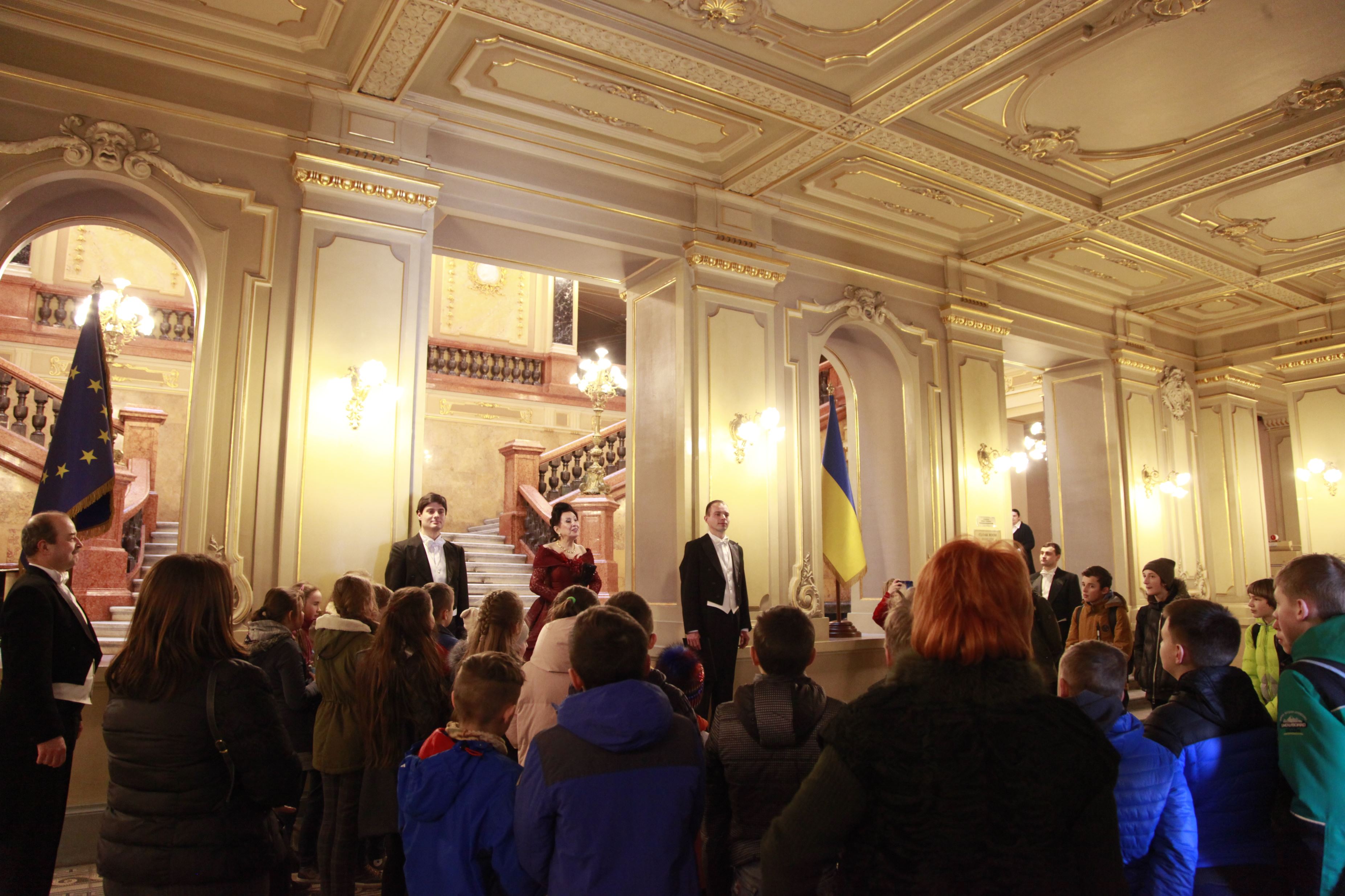 Вкотре свої двері для юних глядачів відкрив Львівський національний академічний театр опери та балету імені Соломії Крушельницької. Діти прийшли сюди разом зі своїми вчителями та батьками, щоб ознайомитися з історією театру, помилуватися розкішним інтер’єром, побачити відеоепізоди з вистав та фрагменти з балету. Сьогодні нашими гостями були школи: № 3, 43, школа м. Сокаль, художня студія «Пілот» Залізничного р-ну та ліцей Галицький.