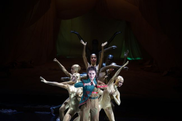 Соколом все починається – актриса неначе вводить в дію публіку разом із блискучо хореографічно-символічно вирішеною (Марчелло Алджері) увертюрою, виходячи просто серед публіки на сцену й ремаркуючи українською те, що ми наразі побачимо і почуємо французькою. Цікавий й абсолютно природний прийом, оскільки ця роль актриси-сокола прекрасно перегукується з традиціями т.з. придворних, «домашніх» театрів. Надалі, протягом дії, Данильчук-Сокіл й існує в цій стилістиці, своїм «модераторством» позначаючи певні смислові та дієві акценти. Крім того, розмовляючи та співаючи українською, вона не тільки виступає таким собі посередником між давньою оперою і сучасністю, а ще й привертає увагу публіки саме до українського коріння як самого композитора, так і деяких мелодійних складових опер.