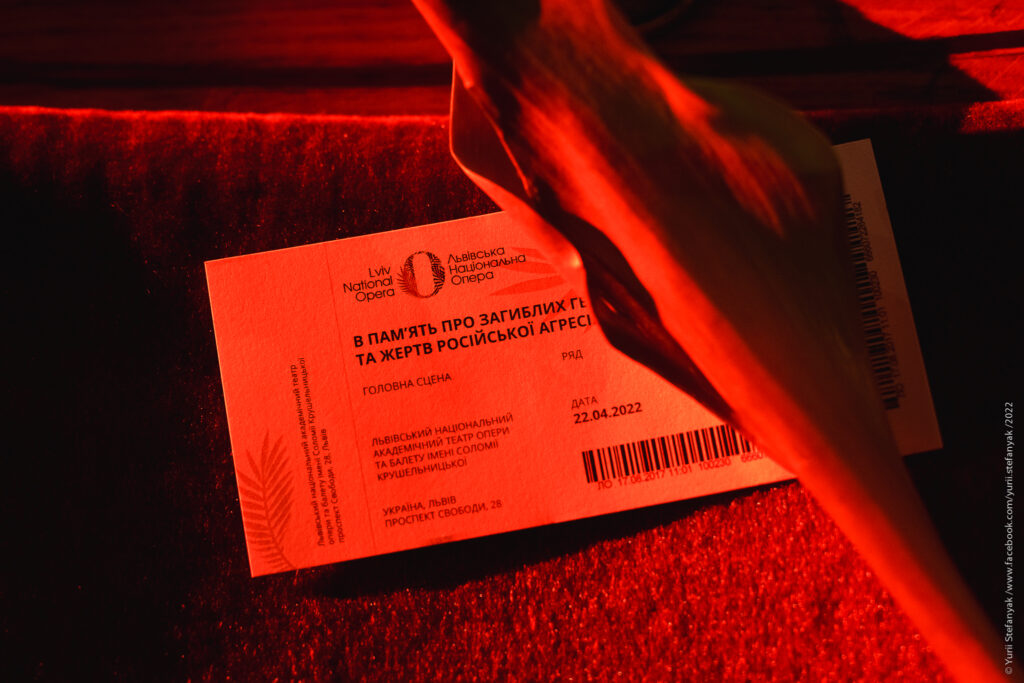 Під час концерту «Stabat Mater» окремі ряди партеру театру, залиті червоним світлом, були вільними, а на кріслах (а це близько 100 місць) – розміщені символічні квиток на концерт і квітка. У театрі зазначають, що таким чином вшановують пам’ять загиблих на війні військових та цивільних, які ніколи більше не зможуть відвідати події театру чи принести квіти артистам. Зокрема, серед невинних жертв російської агресії – розстріляні в м. Ірпінь батьки головного диригента Львівської національної опери Івана Чередніченка.