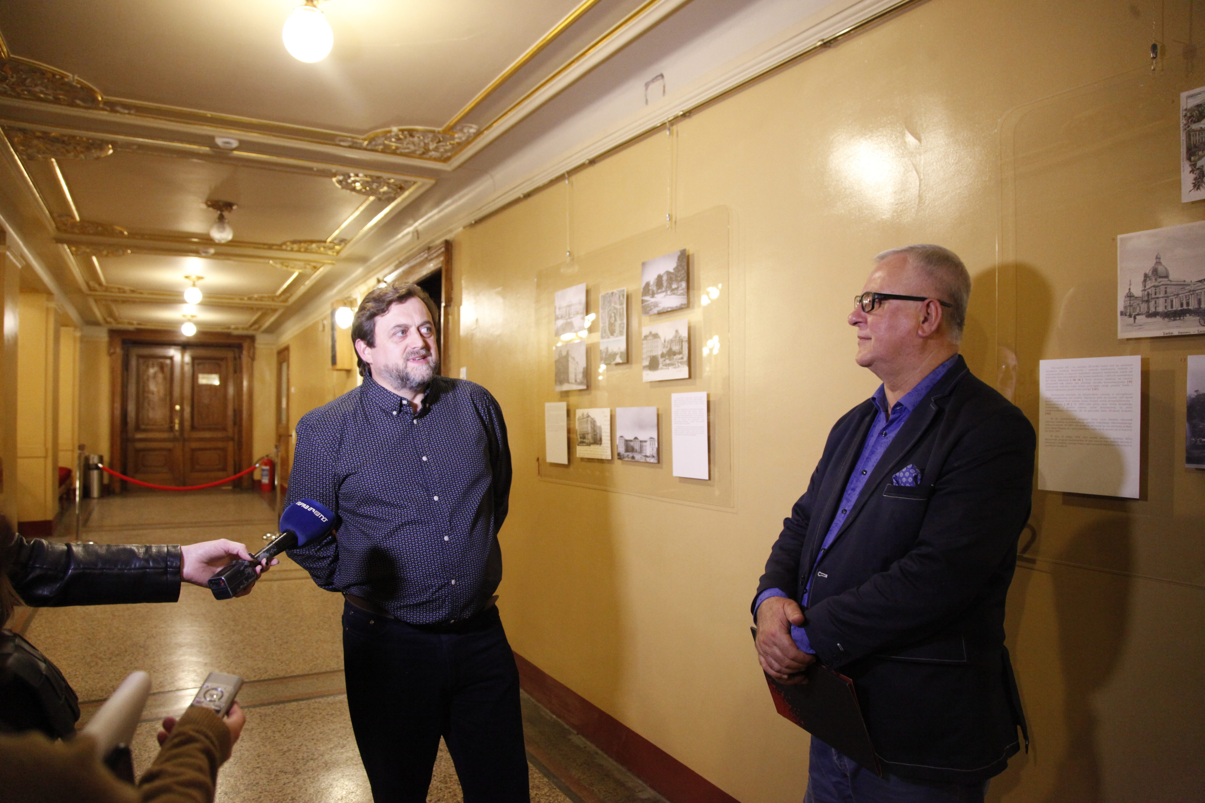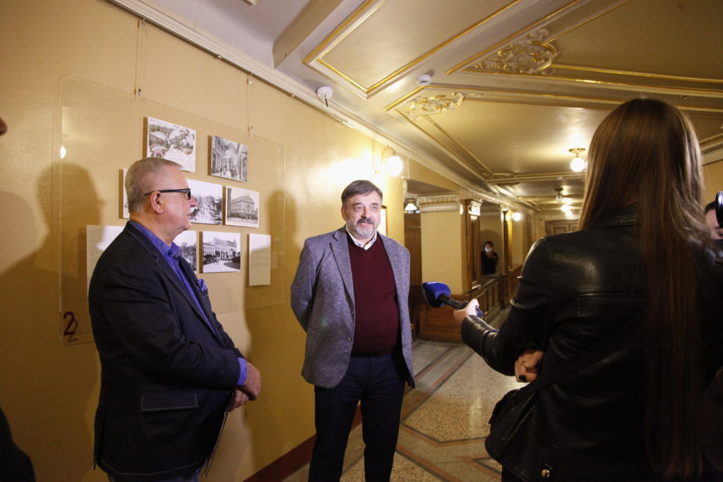 У театрі спілкувалися із журналістами, презентували виставку раритетних фотографій та поштівок з приватної колекції О. Коробова, а ще – книгу про архітектуру театру дослідника Ю. Ямаша.