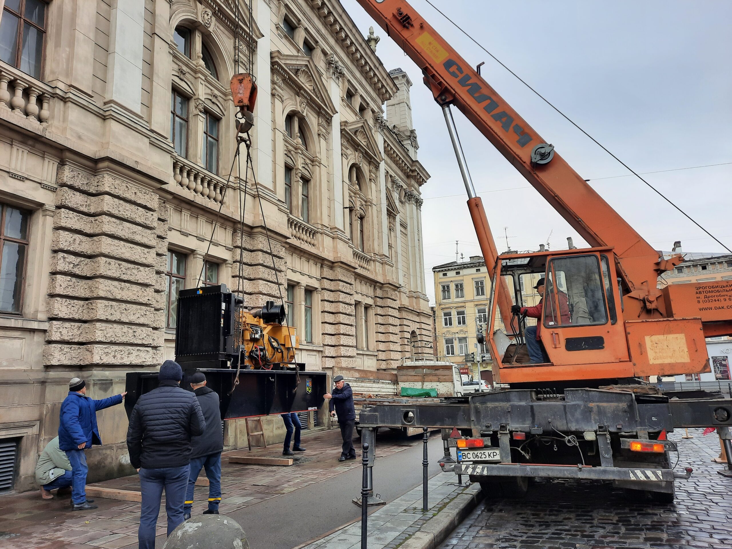 Пристрій вагою понад 3,3 тони та потужністю 275 кВт придбали благодійники з Німеччини: Lukas Augustin, Peter Spary – представники Deutsch-Ukrainische Gesellschaft e.V. DUG-WW); Iryna Starostina – Ballettschule Mainz “Star Ballet”; Johannes Nathan, Matthias Müller, Kilian Heck, Olena Balun – Ukraine Art Aid Center під координуванням львівської волонтерки Марʼяни Мишалової за сприяння Голови Львівської обласної ради Ірини Гримак та Голови Західноукраїнської спілки музеїв Ігоря Тимця.