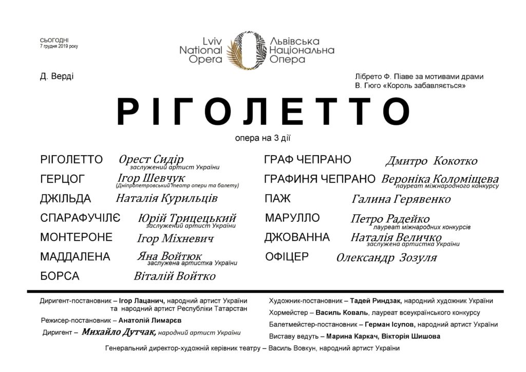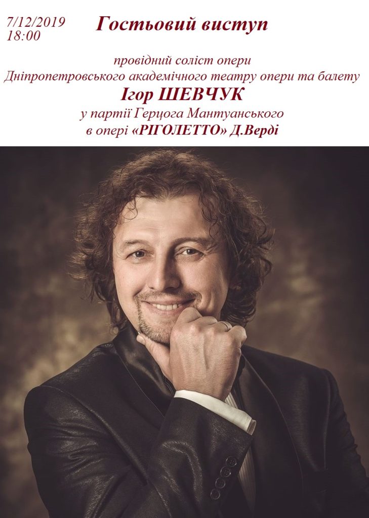 7 грудня у партії Герцога Мантуанського в опері «Ріголетто» Д.Верді виступить запрошений соліст Ігор Шевчук.