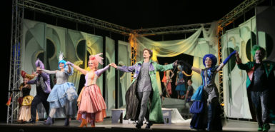 Створене ними на сцені, побачене й почуте на так бажаній виставі не розчарувало. Перше, що ловить погляд, коли розсуваються завіси, – мінімалістичні декорації. Графічно окреслені, візуально легкі, багатофункціональні, вони – наче ілюстрації в журналі, який розповідає веселі історії, часом фривольні. Ці декорації, не сперечаючись, а контрастуючи, служать невибагливим фоном для яскравих персонажів, що вільно рухаються по не ускладненій реквізитом сцені. Артисти на ній – наче барвисті метелики чи екзотичні квіти – навіть без гри і співу милують око барвами й вигадливими силуетами , ваблять грацією тіл і рухів. А голоси – в прозі чи вокалі – чарують, а часом і дивують. Бо на такі висоти вокалу піднімаються, що аж дух перехоплює: адже в зінґшпілі «Директор театру», який змальовує епізод із закулісного життя, солісти змагаються за першість. Важко сказати, хто кого перевершує. Послухавши виступ артистів, напрошується висновок, який звучить у кінці вистави: у театрі важливо не сперечатися, а вірно служити публіці, мистецтву.
