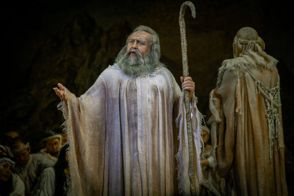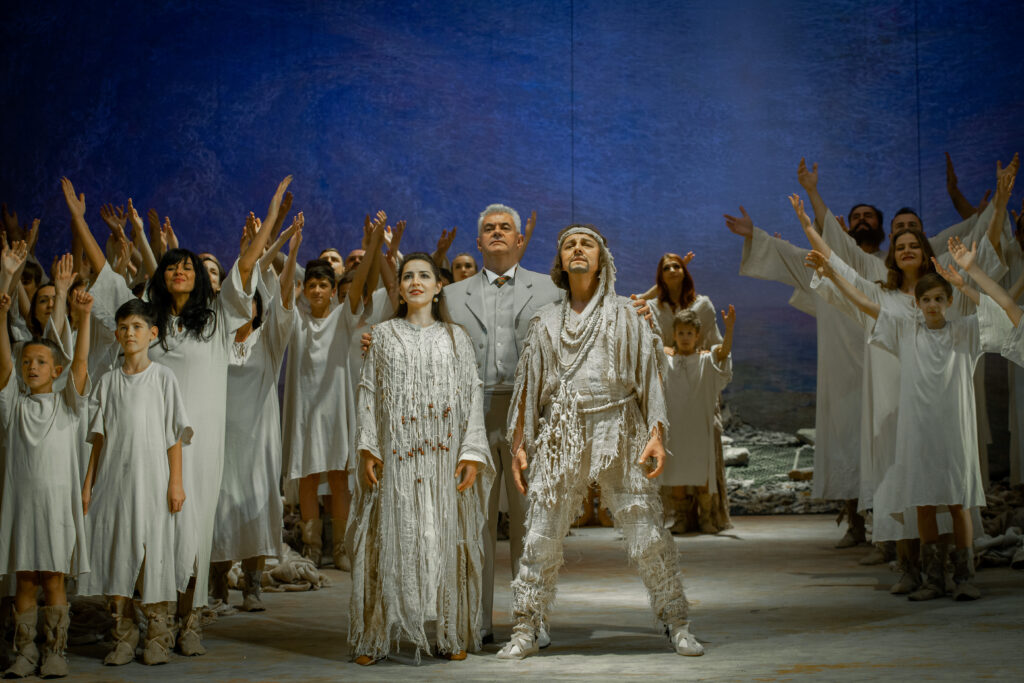 Під час онлайн-трансляції опера по-особливому зазвучала під диригуванням відомого диригента, заслуженого артиста України Андрія Юркевича, який з успіхом виступає на сценах кращих оперних театрів світу, а також завдяки виконананню одного із кращих українських басів сучасності – народного артиста України Сергія Магери, соліста Національної опери України (м. Київ) у провідній партії Мойсея.