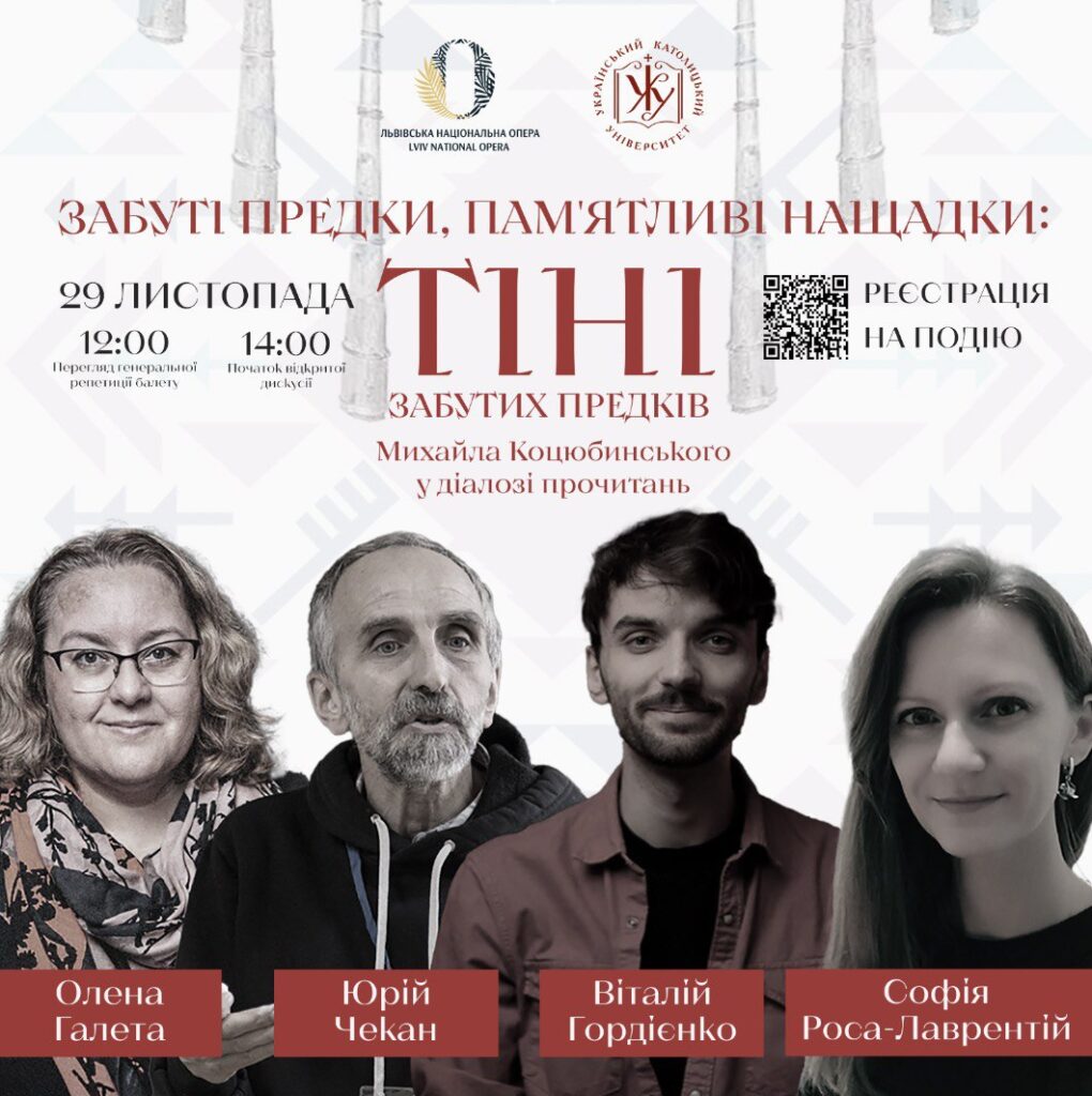 В рамках премʼєрних показів балету «Тіні забутих предків» І. Небесного Львівська національна опера анонсує відкриту дискусію за участі авторитетних спікерів, лідерів думок сучасного культурно-мистецького процесу та студентів Українського Католицького Університету, Львівського національного університету ім І. Франка.