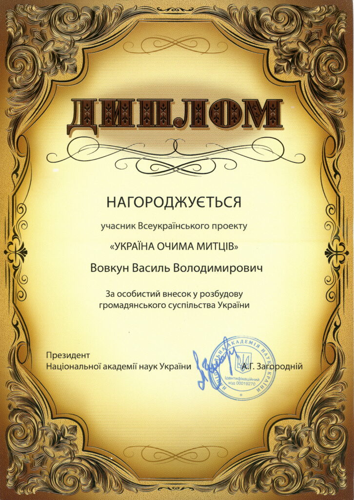 Нагорода підкреслює високий професіоналізм та засвідчує особистий внесок Василя Вовкуна у розбудову громадянського суспільства України.