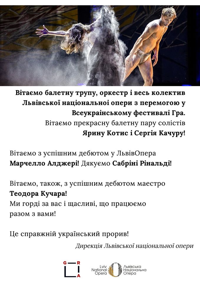 Модерна постановка «Правда під маскою» Львівського національного академічного театру опери та балету імені Соломії Крушельницької, в рамках проекту Василя Вовкуна «Український прорив», в яку увійшли два балети – «Пульчинелла» та «Весна священна» видатного композитора ХХ століття Ігоря Стравінського перемогла у категорії «найкраща хореографічна/ балетна/ пластична вистава» ІІ Всеукраїнського фестивалю-премії ГРА!