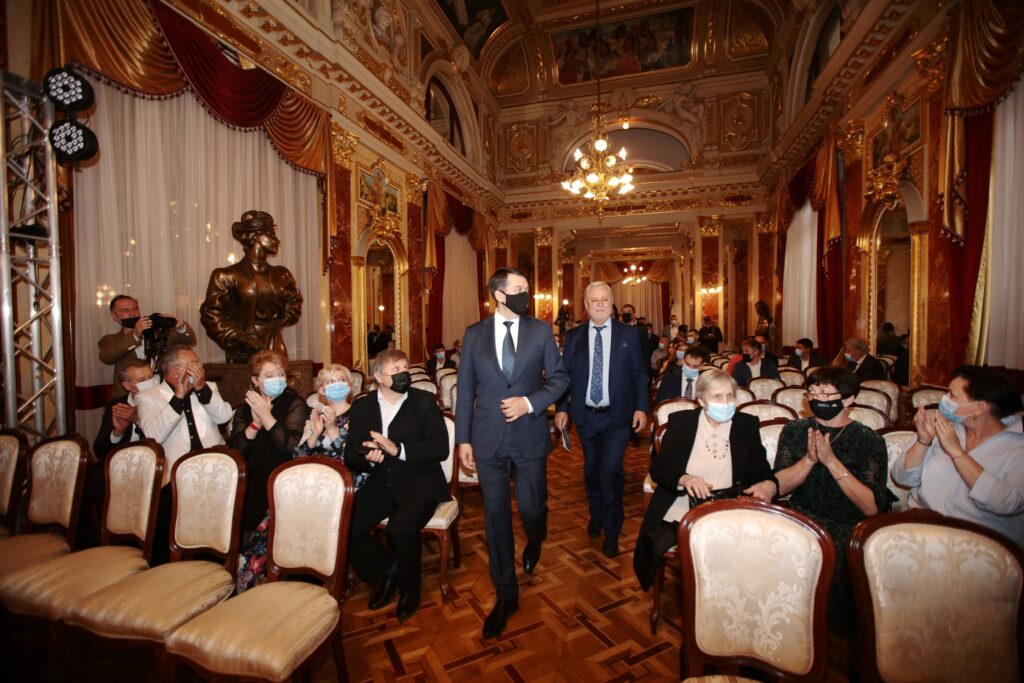 Сьогодні, 10 червня, в рамках робочого візиту Львівщиною, до Львівської національної опери завітав Голова Верховної Ради України Дмитро Разумков. У вишуканому оздобленні Дзеркальної зали, Голова і депутати ВРУ вітали дирекцію та колектив театру, висловили слова подяки й відзначили здобутки театру, вручивши Почесні Грамоти і Грамоти Верховної Ради України.