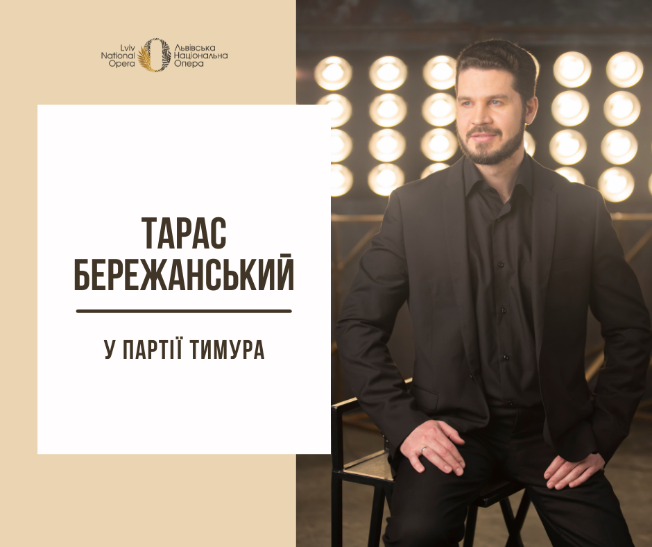 Тарас Бережанський – запрошений соліст театрів кількох континентів – Сіднейської опери, «ДойчеОпер Берлін», Ліонської опери, Національної опери Чилі та інших, а відтепер – соліст Львівської національної опери вперше у творчій кар’єрі та на сцені нашого театру виконає партію Тимура – татарського царя.