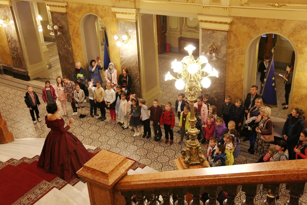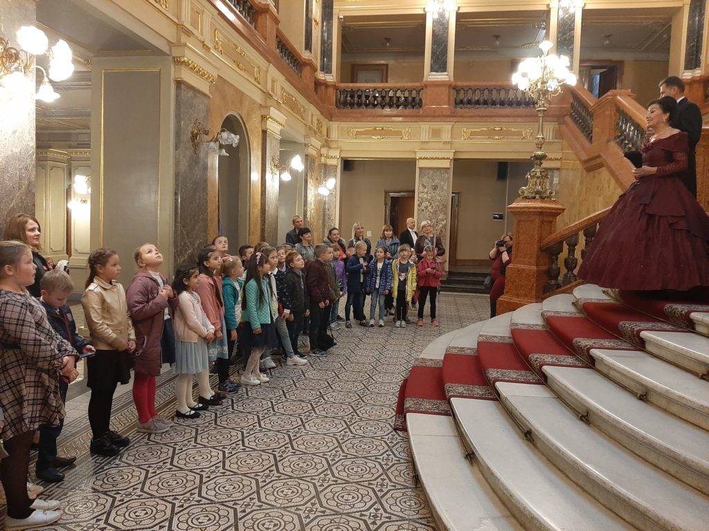 Кожного разу працівники Львівської Національної Опери з радістю зустрічають школярів, проводячи театралізовану екскурсію “Сходинки до Парнасу”.